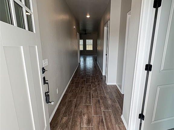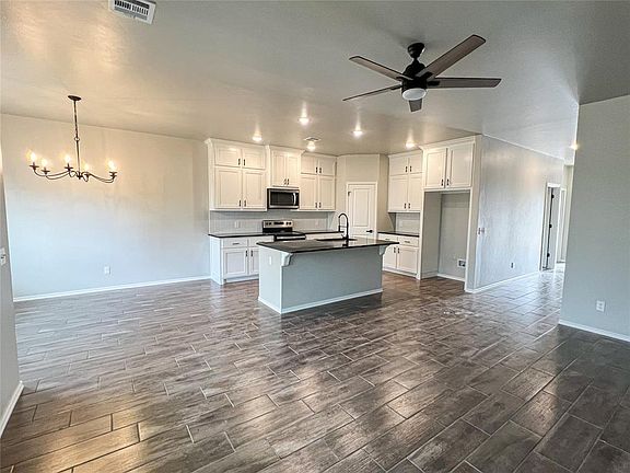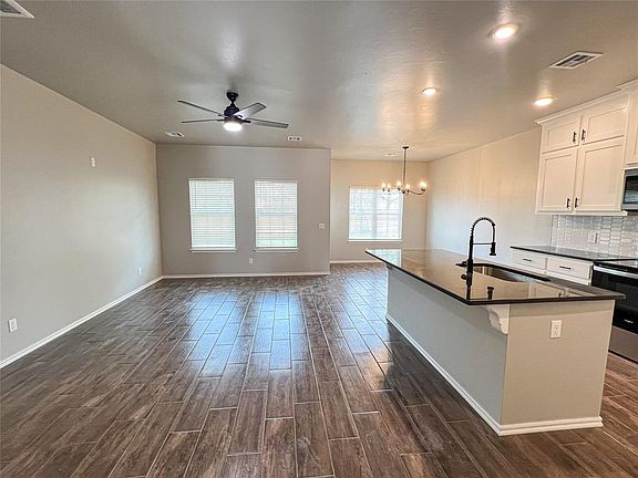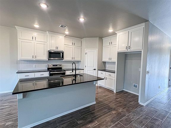 Welcome to this adorable farmhouse-style, new construction home located minutes from I-35 and also minutes from historic downtown Guthrie - offering convenient access to shopping, dining, and entertainment options. Additionally, you'll enjoy the privacy of having no neighbors behind the property. With three bedrooms and two bathrooms, home provides ample space for comfortable living. The open floor plan creates a seamless flow between the living room, dining area, and kitchen, making it ideal for entertaining guests or spending quality time with family. The kitchen and bathrooms are adorned with beautiful granite countertops and custom cabinets adding a touch of elegance. The wood-look tile flooring throughout the common areas adds warmth and durability. The split floor plan provides added privacy by separating the primary bedroom from the secondary