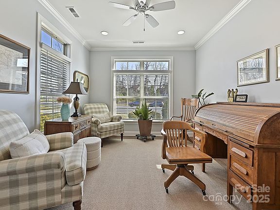 This home is situated in a prime location with abundant natural light throughout. The chef’s kitchen boasts double ovens, a gas cooktop, & premium cabinetry. The spacious bedrooms feature a primary suite with a customized walk-in closet. Enjoy the private outdoor space with a Trex deck overlooking a serene yard. The garage includes an extensive custom storage system by Tailored Living, epoxy floors, cabinetry, & over-car storage. Additional amenities include a whole house water filtration system, premium custom pull-down blinds, a gas fireplace with marble surround, and 3-inch engineered hardwoods downstairs. The bonus room kitchenette with cabinetry and a mini fridge is ideal for guests or live-in care. The property also offers a spacious and sunny front home office, a screened porch off the primary bedroom, and extensive storage options, including under stairs and a walk-in attic. Community amenities include a clubhouse with a fitness room, pool, pickleball court, & walking trails.