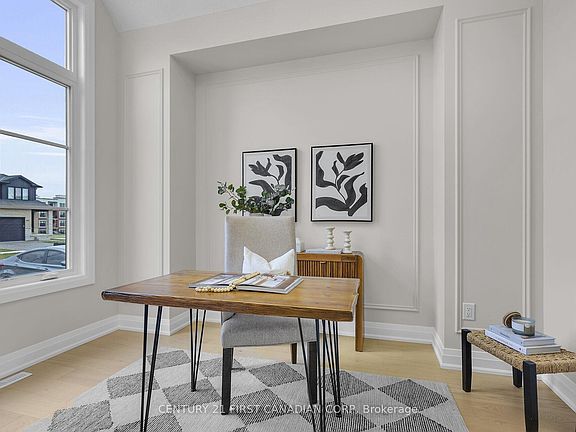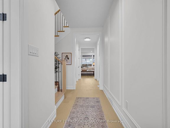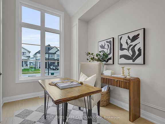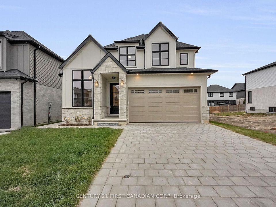 *BONUS* Separate side entrance to the finished lower level offers excellent rental or in-law suite potential. Welcome to The Villa Nouveau, a stunning 5-bedroom, 2-storey home by DOMDAY Developments, in the desirable Warbler Woods community of West London. This thoughtfully designed home features 9-foot ceilings on the main floor and 8-foot ceilings upstairs, with a striking exterior of stone, modern siding, and brick for timeless curb appeal. The open-concept main level connects a stylish kitchen with walk-in pantry, bright dinette, and spacious family room, enhanced by large windows for natural light. Step out to the covered deck, perfect for outdoor dining and entertaining. A main-floor den and mudroom provide added flexibility and convenience. Upstairs, the primary suite offers a walk-in closet and a spa-inspired 5-piece ensuite. Three additional bedrooms, a full bath, and second-floor laundry complete this level. The finished lower level expands the living space with a rec room, roughed-in kitchen, laundry rough-in, 5th bedroom, full bath, and bonus room-making it ideal for an in-law suite or income-generating rental unit. Showcasing high-end finishes throughout, The Villa Nouveau blends modern elegance, functionality, and quality craftsmanship-all in a prime location near scenic trails, top-rated schools, and everyday amenities.