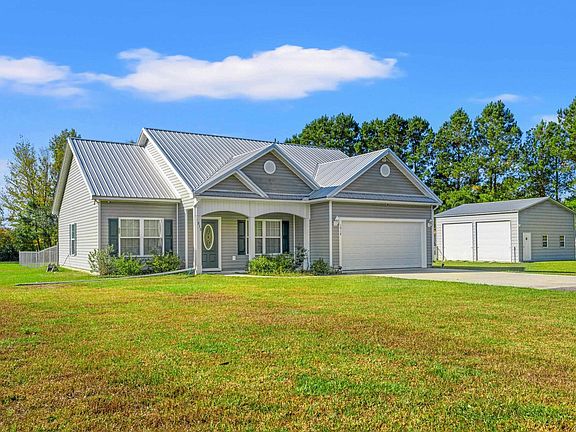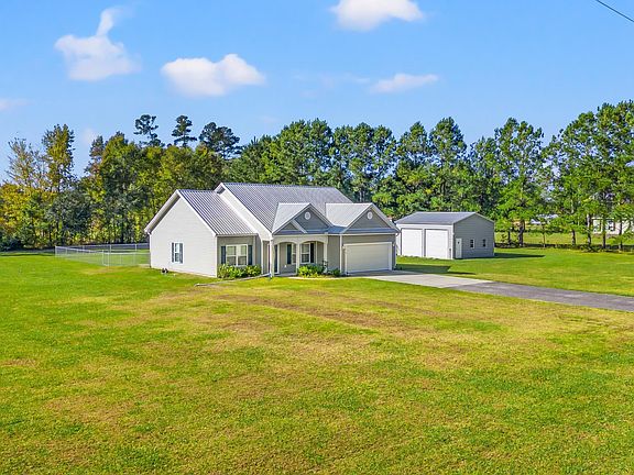 Discover your peaceful retreat in this charming 3 bedroom, 2 bath home set on a spacious 1.84 acres in a country setting with no HOA. Built in 2019 by Creekside Builders, this home features laminate flooring throughout. There is a metal roof with solar panels for easy maintenance and affordability. The kitchen is a highlight, showcasing stunning granite countertops and a large breakfast bar that opens into a cozy breakfast nook as well as dining area and large living room as well. The ceilings in the living area are high and there are a lot of windows in this space which makes it feel bright and airy. A spacious two car garage with epoxy flooring and wash sink complete this home. The backyard is fully fenced, and there is a security camera system throughout the property. To the right of the house, you’ll find a 25'x 25' pole barn with a reinforced slab and its own electricity, offering endless possibilities for storage, projects, or hobbies. This beautiful home is a rare find, combining modern amenities with the charm of country living. Don’t miss out on the opportunity to make it yours—schedule a showing today!