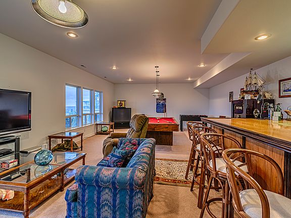 Live in luxury while watching sunsets with your spectacular 180 degree island views from your deck. Main level living & 2nd master suite. 4 beds, 2.5 baths, 3560+/- sq ft, vaulted ceilings & skylights throughout, hardwood flooring & gas fireplaces. Gourmet kitchen with granite counter tops, double ovens & walk in pantry. Master bedroom has a walk in closet and fireplace. Finished basement provides entertainment with the wine cellar, sauna, wet bar and pool table. $10,000.00 BUYER BONUS Offered.