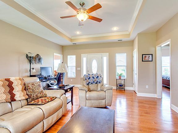 BEAUTIFUL BRICK RANCHER NOW AVAILABLE FOR SHOWINGS! 3BR/2.5BA. Very well maintained! Bright, open concept interiors. Trey ceiling with recessed lighting in living room. Spacious kitchen with stainless appliances and breakfast bar. Master Suite also features trey ceilings, double vanities, and walk-in closet. Relaxing back porch overlooks level backyard--nearly 2 acre lot! Only 15 minutes from the lake. This home is perfect for your family! Don't miss it! (Buyer and/or Buyer's Licensed Agent to verify all property information.)