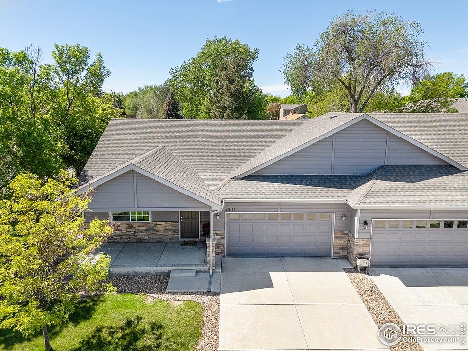 Picture yourself stepping into a truly polished home, where top-notch finishes meet easy living! Imagine the beauty of gleaming hardwood floors and the elegance of granite countertops perfectly complementing rich hardwood cabinets. Homes of this exceptional quality and meticulous care are a rare find. Beyond the stunning interiors, this inviting 2-bedroom, 2-bathroom property offers the ultimate in convenience with HOA-managed yard mowing and snow removal! You'll also appreciate the attached 2-car garage and a kitchen featuring sleek stainless steel appliances. Grilling is a joy with the built-in natural gas grill - no more propane tanks! Relax in the sun-drenched living areas, where top-down blinds provide the perfect balance of light and privacy. Both bathrooms boast luxurious walk-in tiled showers. The mostly fenced yard offers a great space for pets, with the option to easily enclose it completely. Plus, the exterior is being freshly repainted by the HOA! Located in an unbeatable spot, you'll enjoy quick access to schools, with King Soopers just minutes away and downtown Loveland and Centerra shopping within easy reach via nearby 1st Street. Built in 2015 and offering 1,240 sq ft of comfortable living space, this meticulously maintained home is a must-see!