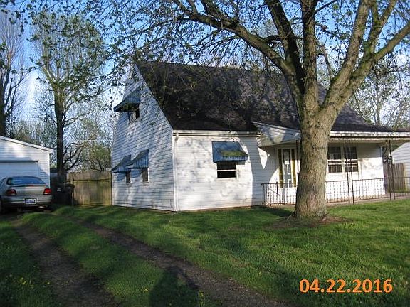 This four bedroom home with two bedrooms on main level has a lot to offer. Great room off of eat in kitchen. One full bath on main level and half bath upstairs with other two bedrooms. There is laundry area on main floor as well. There is a two car detached garage with mini barn in fenced in back yard. This home has a covered front porch and large open patio in back yard.