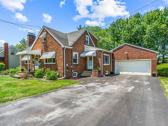 NEW NEW NEW! Well maintained 2 owner brick home situated on large corner lot with fenced back yard. Enter through the 2 car attached garage to the kitchen, spacious dining and living room featuring wood burning fireplace, hardwood flooring throughout. Convenient 1st floor living option with full bath featuring step in shower, & 1st floor bedroom. 2nd story is host to 2 additional bedrooms both having dual closets. Basement is partially finished & has in law suite potential with ample space and 1/2 bath. Perfect for multi-generational family home or work from home with dedicated office. Move in with peace of mind knowing many new & updated major element include: Furnace 5yrs, central air & stove 3yrs, roof approx 10 yrs, chimney 5yrs. Windows, hot water tank, and landscaping all 2022 with chain link fenced backyard, new garage door, freshly blacktopped drive 2021. Concrete patio 6 yrs, new flooring in basement. Perfect for relaxing or entertaining with your own personal outside oasis.