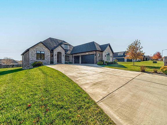 Are you looking for that one of a kind home that offers that 'WOW Factor''?! This gorgeous custom built home in Tuscany Hills Subdivision does just that from the minute you open the front door. You will be greeted with a 20 ft beamed cathedral ceiling and large windows that look out over a covered deck and spacious back yard. This open floor plan has an entry to a bathroom in each of the 4 spacious bedrooms (or office) and opens to the kitchen with center island, quartz countertops, 5 burner gas range, convection oven, walk-in pantry and under cabinet lighting. Beautiful Scandinavian style hardwood flooring and tile throughout. The spacious mud room offers plenty of storage and built in bench with oversized laundry room, sink and folding counter. And if that's not enough, there's a large John Deere room for your mowing equipment and tools! Call for your private showing today! You will not be disappointed!