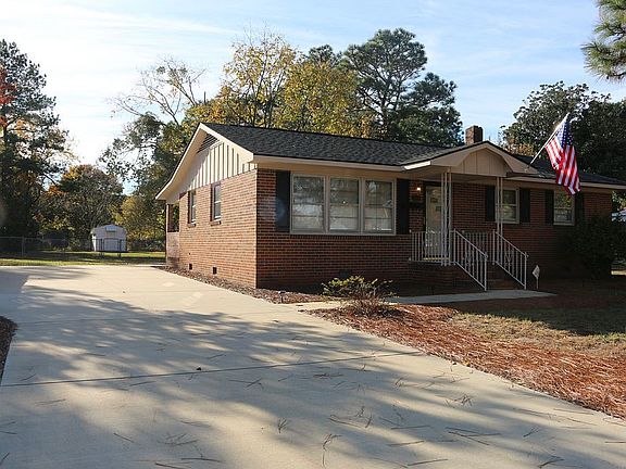 Step into this spacious single-story brick home located on a quiet half-acre lot, perfect for your family. The layout features three bedrooms and one bathroom, along with an eat-in kitchen equipped with under-counter lights, a refrigerator, dishwasher, and built-in oven. Enjoy year-round comfort with central heat and AC, complemented by ceiling fans. The large fenced yard is ideal for pets, while the concrete back patio offers a great space for gatherings. Additional amenities include a double concrete driveway and a wired storage building. This home is conveniently situated near shopping, medical offices, dining, schools, and Fort Bragg. Don't wait schedule your viewing today!