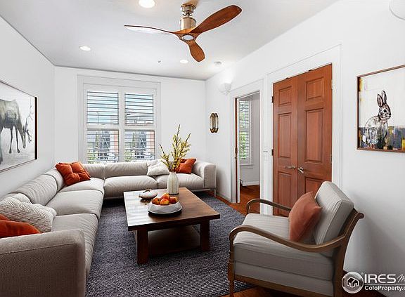 Classic traditional feel w/cherrywood cabinets/floors & plantation shutter window coverings. Upper level master suite has sunlight from 3 sides and southwest facing deck with unobstructed Flatiron views. Main level bedroom converted to an office with built-in bookcase & desk plus a "zoom" bed for guests. Living rm w/13ft ceilings and gas fireplace. High end finishes through-out. Single car garage off alley