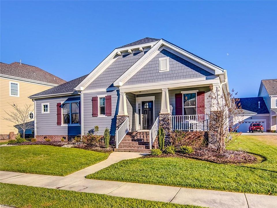 Be the first to live in this pristine upgraded ranch M model-craftsman elevation Sasser Built home. Back porch upgraded-storm windows, storm door, built in speakers & stamped concrete floor. Enter onto hardwood flooring continuing back into the open floor plan of kit-dining & living areas. Master bedroom suite is luxurious with double walk in closets, attached large expanded master bath w/ceramic tile shower & double sink. Kitchen w/huge center island for eating & serving, granite counter-tops, stainless appliances & a cathedral ceiling. Laundry room & pantry off kitchen & door leading into the huge detached garage. Move-in ready!