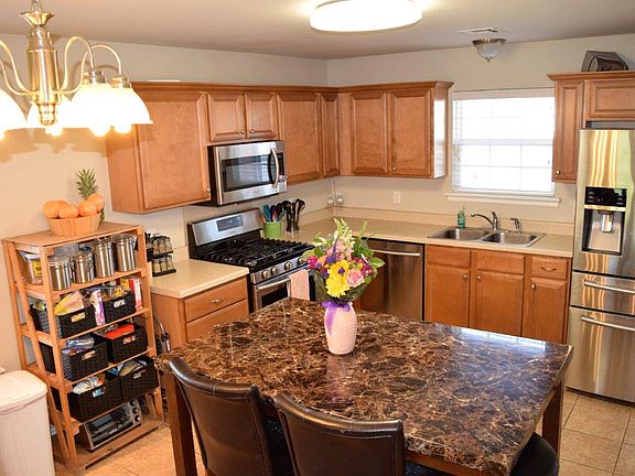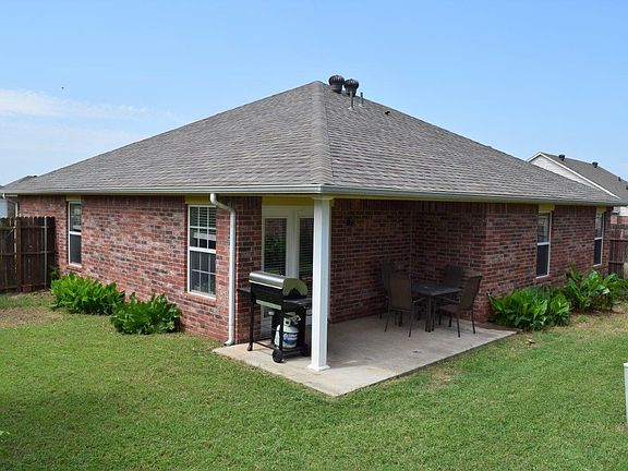 Job Transfer -- Sellers are sad to leave their home but must move for work. New roof, and new stainless Samsung kitchen appliances. This home is neat as can be and super clean, located on a cul-de-sac in the growing Timbers Addition. Lovely open floor plan with kitchen and dining flowing effortlessly into the living room. Bedrooms all have double door closets for ultimate storage space. Master Bedroom is large with a walk-in closet and full bath attached. The laundry room is conveniently located near all bedrooms, has cabinets, a long clothing rod, and is oversized to allow for hampers and other organizational necessities. The private covered patio is the perfect spot to enjoy the beautiful flowers and catch a sunset. Just minutes to HWY 177 and I-40 with convenient access to colleges, restaurants, shopping and hospital as well.