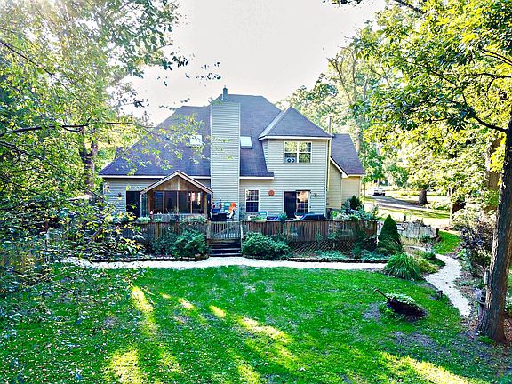Beautiful large home nestled in the woods in a secluded , private neighborhood next to the State Park and across from the Lower Fox River. Plenty of custom features including a 53x16 deck off the back with covered Hot Tub area.