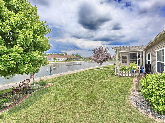 Enjoy being on the lake & the convenience of single-story living in this 2 bedroom, 2 full bath, zerolot offering the benefits of home ownership without the burden of yard maintenance; the low monthly HOA fee of $100 includes mowing, snow removal, upkeep of commons area and maintaining the pond. The enclosed sun porch and the pergola-covered back patio will quickly become your favorite peaceful lakefront retreat. The dedicated office provides the perfect space to get your work done in privacy. If you are looking to downsize, look no further than this 55+ community to call home!