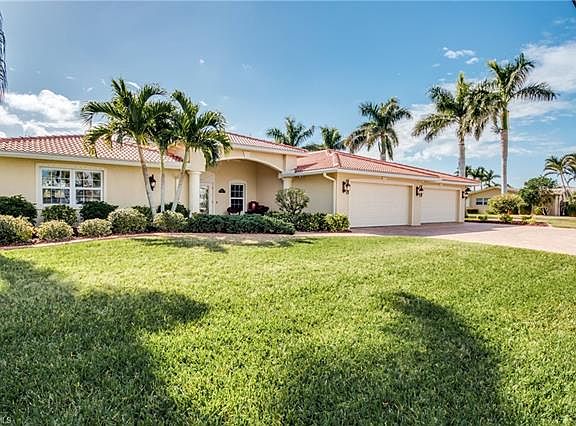 Location! Location! Location! Boater's Dream Home! Direct sailboat access! Car Enthusiast as Well! (4-Car Garage) One of the most coveted and highly sought after styles of property in Cape Coral are those that are graced with the sights and sounds of water lapping at their property's edge. This waterfront community in Cape Coral has the unparalleled advantage of some of the most incredible views. This expansive 3 bedroom 2-1/2 bath heated pool home is situated on a 150 ft. deep lot in the immensely favored neighborhood of Palaco Grande, just 16 homes away from the Caloosahatchee River. Home was completely updated in 2008, featuring Custom imported wood cabinets with high-end granite countertops throughout, huge walk-in pantry, outdoor kitchen, and so much more! Composite decking Captains walk with New Tiki Hut and 20,000 LB. boat lift. Welcome to your new executive home in paradise!!! Be sure to check out the virtual tour and drone video.