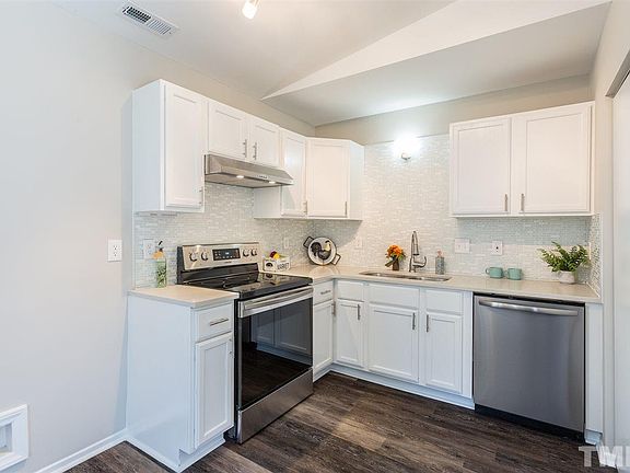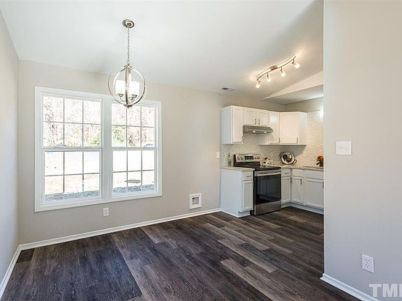 GORGEOUS One story home with a bright open floor plan and upgrades galore! Features a custom designer kitchen with solid surface counters, tile back splash and Stainless Steel appliances. Beautiful LVT flooring throughout main living areas. NEW plush carpet & designer paint. Convenient to RTP and Duke. No HOA dues. Move in and enjoy.