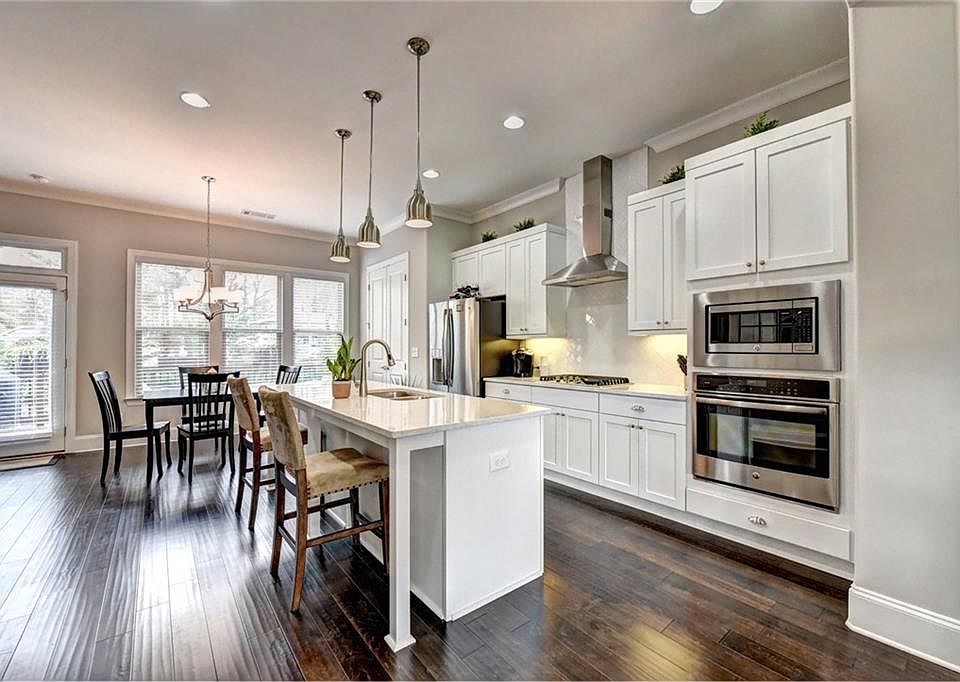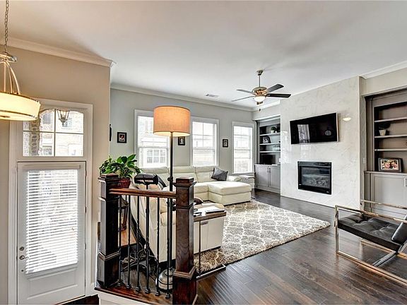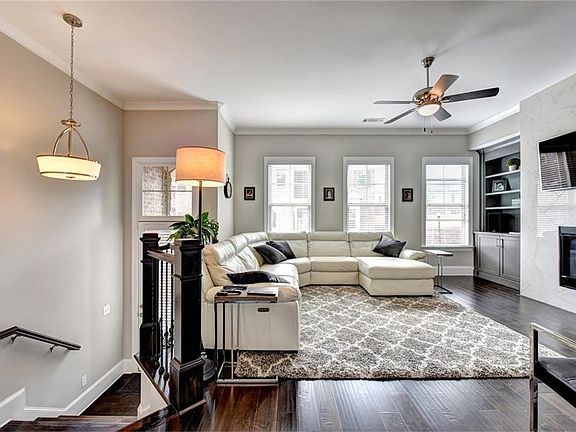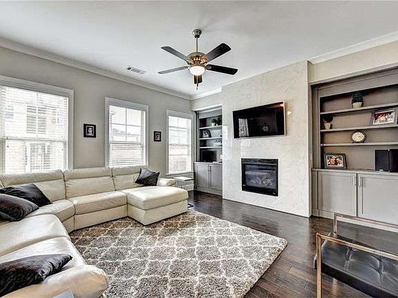 JUST REDUCED! SHOWS LIKE A MODEL! Open floor plan (Bedford II) at Townsend at Toco Hills. Built-in bookcases flank the dramatic floor to ceiling fireplace; Rich dark hardwoods; Chef's kitchen has GE Performance stainless, quartz countertops, herringbone subway tile backsplash to ceiling over stainless vent hood; Eating area overlooks a large deck & fenced-in backyard; Gas line to grill; Master suite has an amazing huge shower; 3 upstairs bedrooms and media/4th bedroom on lower level. Patio with under deck & LED lighting; Garage with epoxy floor.