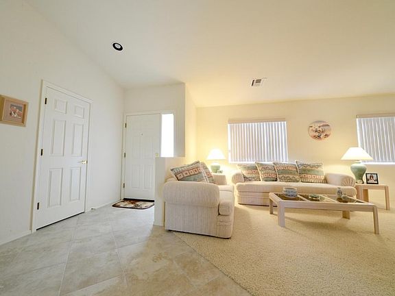 CLEAN, neat & just waiting for you to move right in. The photos just do not convey the entire scope of how lovingly this home has been maintained. Enjoy a beautiful mountain view from the front patio with morning coffee. High ceilings, 2 bed 2 bath home with living room, dinning room & bonus family room. NEW 18'' tile on a diagonal through out except in living room & dinning room. Guest suite has a pocket door so your guests have total privacy. 2 car garage has epoxy floors and storage cabinets down the side. The extended laundry room has as space for an office or storage and there is loads of storage throughout with ample closets. Lots of beautiful maple cabinets in the kitchen and Honeycomb blinds. Both bathrooms have maple cabinets and the master has dual sinks. New water heater in 2017