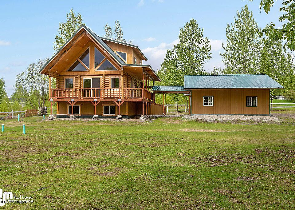 Beautiful log home in peaceful Alaska setting. Almost a full acre surrounding this like new custom built log home with deck wrapping around the southern exposure. New but rustic feel for carefree living. Stainless appliances