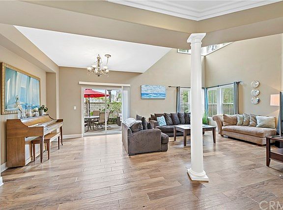 Built in 2005, this beautiful Peninsula Point mediterranean-style home sits on one of the largest lots in the tract. Enter into an open floor-plan w/ a combination of 9 foot & 2 story ceilings. The abundance of natural light, double pane windows, & recessed lighting throughout the entire home accents the walnut flooring on the 1st floor & high-end crown molding on both floors. A convenient powder room & closet for more storage. Enter into the expansive dining room area where you will find a large remodeled Chef's kitchen w/ newly painted cabinets, granite counter tops, stainless steel appliances, built-in fridge, a large island, & easy access to your garage. Enjoy some food or wine next to a cozy fireplace w/ a custom built-in dry bar & wine fridge. An extra doorway to the backyard to relax on your very own mini sand beach. A patio perfect for BBQ's, entertaining, & a large grass area surrounded by lush & tropical landscaping. Upstairs, a sitting nook perfect for an office or play area & all 3 bedrooms w/ their own ceiling fans & mirrored closet doors. Master suite w/ a walk-in closet, master bath w/ dual sinks, soaking tub, walk in shower, & private toilet room. A full, hallway bath w/ dual sinks, conveniently across the laundry room. Close to prestiges schools & only a 1.5 mile bike ride to world class beaches, fine dining, entertainment, Main St, Pacific City, Sea Cliff, & 5-Points Shopping Centers, easy access to freeways & PCH, you have to come see this for yourself!