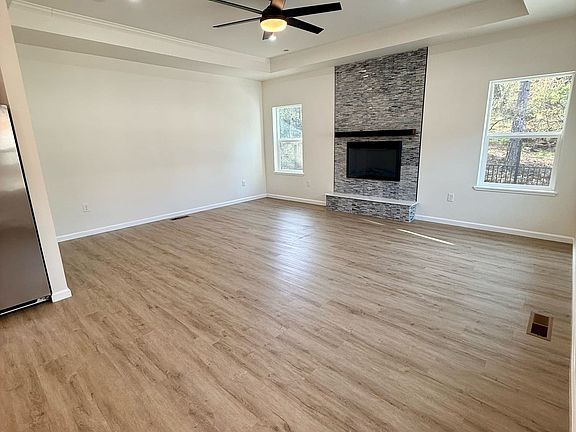 Beautiful fireplaceBeautiful landscapingLarge open concept homeLots of windowsAttached garageThree bedroomsLots of closet space