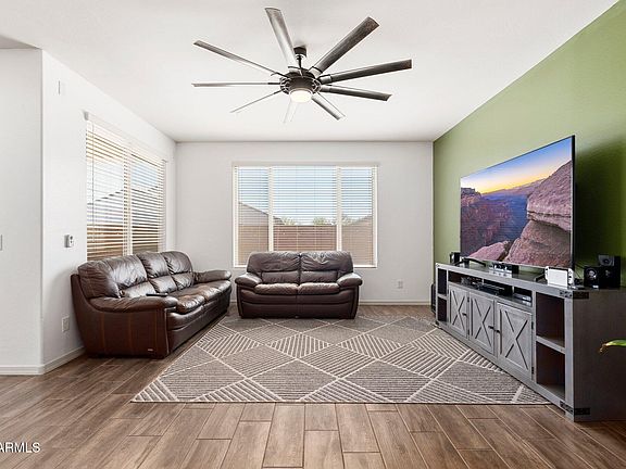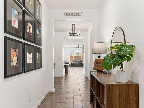 This stunning home reflects true pride of ownership with 4 bedrooms and 3 bathrooms. The master suite offers a private wing, a spacious walk-in closet, oversized walk-in shower, and double vanity. A separate den provides flexibility as a living room, playroom, or office. The kitchen features elegant countertops, a custom black backsplash, custom-colored cabinets, and a walk-in pantry, along with an oversized island perfect for gatherings. The living room and bar area are ideal for entertaining, with access to a backyard that includes pine trees, a concrete slab, and a covered patio. Upgrades and custom details throughout make this home a must-see!
