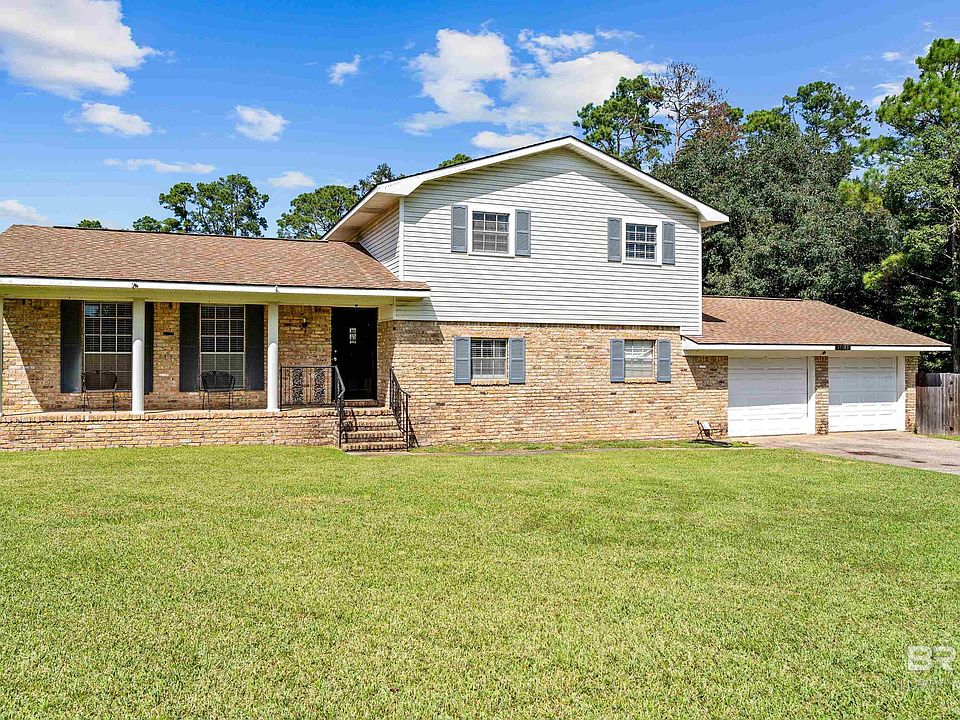 Custom built brick home on corner lot just off Highway 59 in Robertsdale. This 4 bedroom, 2 bath home offers lots of space for guests and entertaining with the living room, den, and dining room. Primary suite on main level with 3 bedrooms and a bath upstairs. Large front porch and a screened back patio to enjoy your morning coffee. The oversized double garage also includes a storage or workroom. Privacy fenced yard with room for boat, RV, or work trailer and lots of room to build a garage or workshop. Call today for an appointment as this rare find will not last long. All information provided is deemed reliable but not guaranteed. Buyer or buyer’s agent to verify all information. Buyer to verify all information during due diligence.