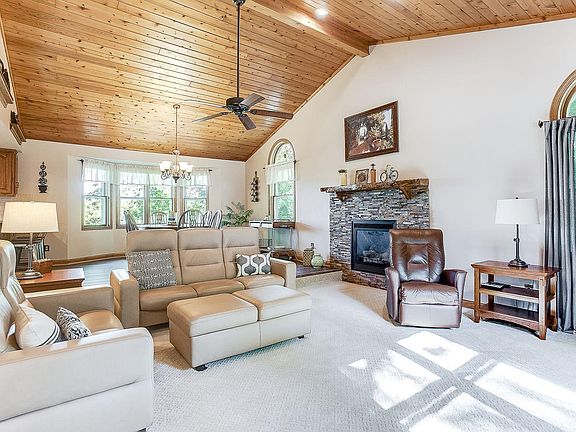 - Fireplace features: Circulating, Gas, Living Room, Stone