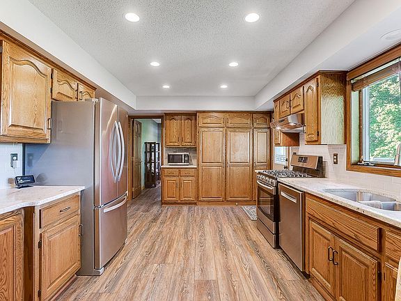 Welcome home! This custom built, original owner property has been meticulously maintained with extensive, recent updates. Private master suite has been completely remodeled with a large walk-in tile shower with glass door, dual vanity with granite tops, soft close doors and drawers, and a massive custom walk-in closet. Kitchen is large and spacious with plenty of cabinet space. Stainless steel appliances, backsplash, granite, new LVP flooring, just to name a few. Lower level walkout features a full wet bar complete with custom hickory cabinets and plenty of space for entertainment! Lounge in one of your many sun drenched patio/porch areas with a paver area set up for all your grilling needs - supplied with a direct gas line. Large, almost 3 acre irrigated lot with storage shed and abundant yard space for all your hobbies. Close enough to shopping, restaurants, and highways while still being away to enjoy the space and privacy you desire! Truly a turn-key property!