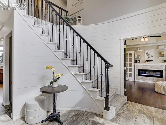 Nestled on a 6+ acre estate in Kings Deer with valuable water rights, this breathtaking home is a masterpiece of luxury and serenity. Designed to embrace its natural surroundings, it offers unrivaled mountain and meadow views, multiple outdoor living spaces, and refined interiors exuding both comfort and grandeur. Step into the grand foyer, where an awe-inspiring staircase sets the tone for sophistication. The main level boasts a spectacular living room with panoramic views, soaring ceilings, a fireplace, and seamless access to the expansive back deck—perfect for soaking in the serene landscape. The open-concept design flows into a formal dining area and an eat-in kitchen, where every detail is thoughtfully designed. The walk-in pantry is truly a dream, offering unparalleled storage. Nearby, a sprawling laundry room redefines convenience. The primary suite is a private sanctuary featuring a cozy fireplace, an exquisite custom closet, a spa-inspired ensuite, and a tranquil sitting area with a gorgeous electric fireplace. Upstairs, three spacious bedrooms offer comfort and charm, including one with a private en-suite. The lower level is an entertainer’s paradise, featuring two more spacious bedrooms, an impressive game room, a stylish bar, and a sprawling secondary living space. Gather around another grand fireplace or step outside onto the additional patio to enjoy the peaceful landscape. Beyond its stunning design and prime location, this home boasts a whole-house water filtration system, including a water softener and reverse osmosis system, ensuring pristine water quality throughout. A rare fusion of warmth, sophistication, and modern luxury—crafted for both effortless living and grand entertaining.