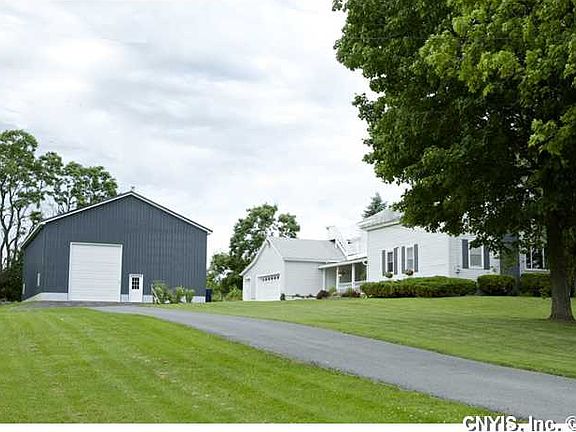 Outdoor lover's paradise! Rustic charm on dead end road, surrounded by fields & mature trees. Private, no traffic, no worries about pets. 40X60X18 heated garage for projects, vehicle storage...even basketball! 2 miles from I-81, close to C/Watertown, but Sackets Harbor School District. Remodeled farmhouse, updated heating & wiring, new kitchen with cherry cabinets & Cambria counter tops that opens into a spacious living room. 2 full baths, (3) 2nd-floor BR, (1) 1st-floor BR/office, all with lg walk-in closets! Unique deck with panoramic views.