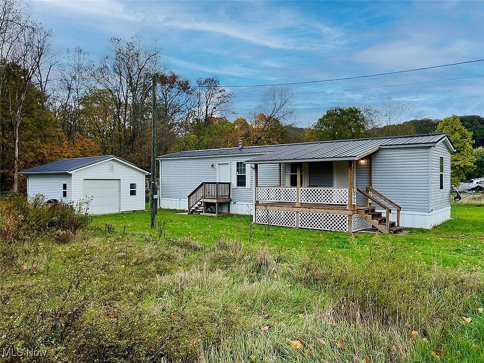 Move-In-Ready Manufactured Home - Garage - Land. This super clean 2014 Mansion manufactured home is ready to be moved into. The home features 2 bedrooms, 1 full bath, and a full kitchen with appliances included. Main-level laundry. Detached 18’x20’ single-car garage. Covered front porch. Good steel roofs on both structures. Propane FA furnace. Public water & sewer. The home is placed on a solid cement slab. The double lot of land is included with the purchase, approximately .23 acres! Affordable living. Financing available. Schedule your showing today.