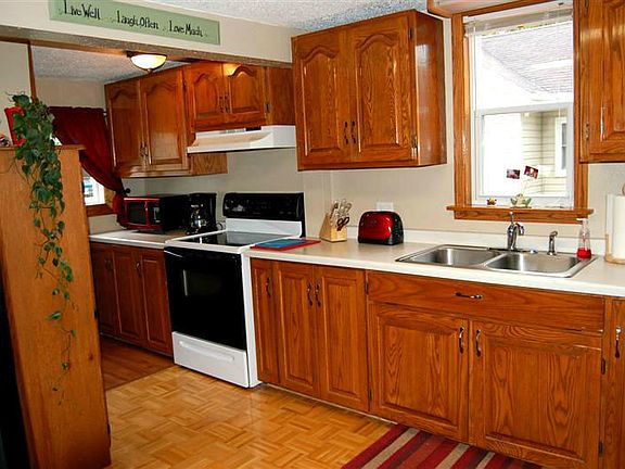 Homey, Well kept property that is ready to move into. Parquet floor in the kitchen, newer living room carpet & a large master bedroom. Vinyl exterior. Some new windows. Shingled within the last 4 years. Large back entry.