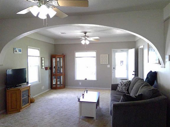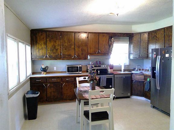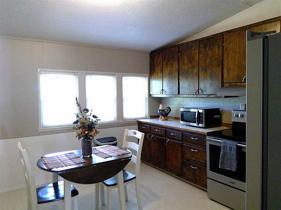 Cute 2 bed, 1 bath home that sits on a large corner lot. Has a large eat in kitchen with new stainless steel appliances, attached carport and big nice front porch with a swing. You walk in to a big living room with bedroom/office just off of it, then down the hall to bathroom and master bedroom, through closet to utility room. Outside storage shed with lean-to for more storage. Make plan to see this home.