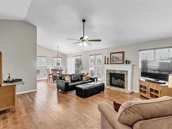 With rich hardwood floors, soaring vaulted ceilings & an open floorplan, this beautiful ranch is sure to delight! Cozy up next to the great room fireplace flanked by big windows. The kitchen features cabinets with roll-out trays, pantry, breakfast bar & a breakfast room with a slider that opens to an amazing composite lighted deck. Perfect indoor/outdoor entertaining! Handy laundry room off the kitchen. The vaulted master suite has a private bath w/separate soaking tub & shower as well as a 4-season sitting room with access to the deck. Great place to read or enjoy morning coffee! Follow the paved walkway surrounded by meticulous landscaping to the back yard oasis with vinyl fencing & a paver patio with a firepit & partial covering. Walk-out lower level w/a roughed-in bath ready for custom finish. Recently updated roof. Quaint neighborhood far from the noise, but near every Wentzville convenience. Wentzville Holt Schools. Easy access to I-70/64. 13-mo warranty included. See it today!