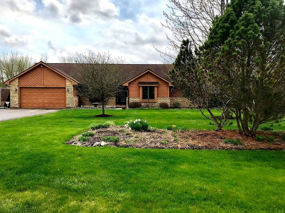PRISTINE SYCAMORE RANCH NESTLED ON .78 ACRE! This well built home features a beautiful stone fireplace & vaulted ceiling w/ exposed beam in living room. Kitchen includes granite counter tops, large pantry & SS appliances. Eating area has a lovely view thru full length windows of professionally landscaped yard. Dining room adds space for entertaining. Spacious Master Suite boasts a walk in tile shower w/ bench, dbl sinks & 2 closets! 2nd and 3rd bedrooms share a full bath. Sunny 3 season room is a great place to relax. First floor laundry is equipped w/ washer & dryer and extra storage . Finished basement includes large family room w/ gas fire place, English windows, 4th bedroom & plenty of storage. Heated 2 car garage & large driveway. You will enjoy the wrap around deck & professionally landscaped yard. Updates include: Roof '02, HV '07, Pella entrance doors & windows in 3 season '10, AC '09, appliances '11, fireplace stone '12, deck '14 & much more! Call Today!