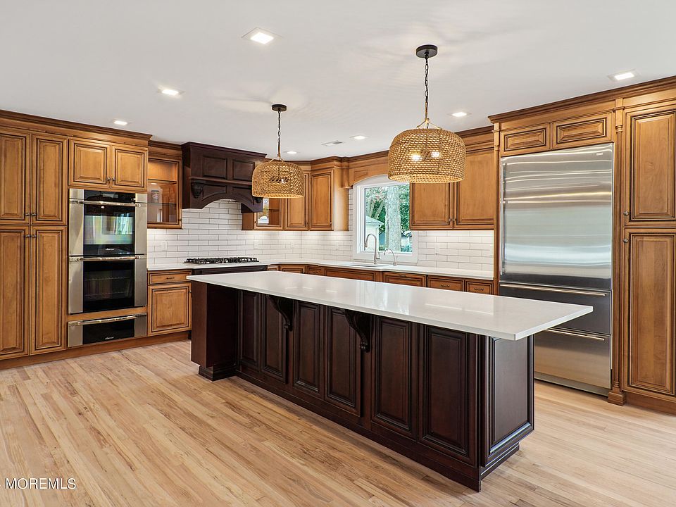 FULLY RENOVATED RANCH w/ attached 1 car garage on oversized, park-like lot in West Belmar. One of a kind property by a renown local contractor. Original House was taken down to the studs & completely REBUILT & reconfigured. Deluxe Chef's Kitchen features DACOR double wall oven,+warming drawer, SUB-ZERO counter- depth fridge, beverage fridge, BOSCH dishwasher and stove top, plus new drawer-microwave. Radiant floor heating in both bathrooms and well as stylish touches to be found everywhere. Back yard is large enough for a pool, and features a generously sized BRAND new Trex deck. Entire exterior is BRAND NEW - roof, siding, Andersen 400 series windows + sliding doors, etc....Minutes to Spring Lake & Belmar beaches, nightlife etc. Get in for SUMMER '24!