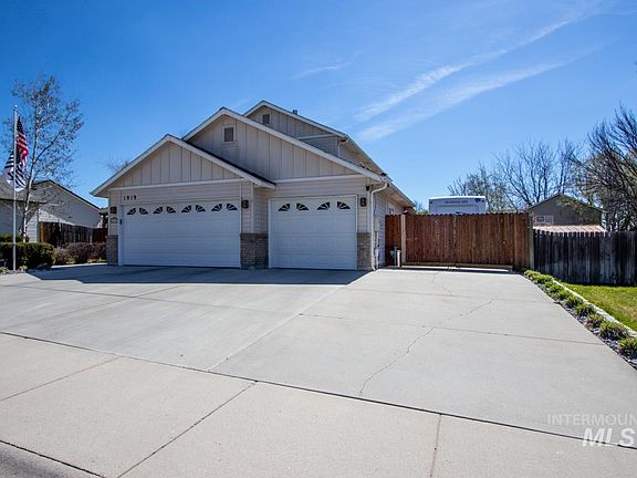 Room for your toys! Garage will hold four vehicles. Third garage tandem bay is 45 feet deep and the outside RV storage is 70 feet deep. This well maintained two story is minutes from shopping, schools and is located between the two Meridian I-84 exits. Defined entry welcomes you to an open concept living area on the main floor. There is a bedroom and a full bath for family members or guests on the main floor as well. Large master suite and two more bedrooms upstairs. The back and side are an entertainers dream, great for family gatherings or just relaxing. Trex type deck, pergola and lots of shade. Hot tub is included in sale.