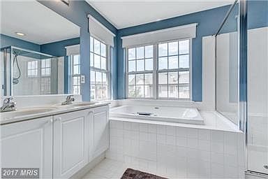 Beautiful home in North Crossing. Clean & fresh this lovely home has wood floors and lots of windows making it sunny & bright. A 3 level bump out offers plenty of living area. You're sure to love the open floor plan that's perfect for entertaining. New Stainless appliances, breakfast room/family room, huge master with super bath, full finished basement with family room and 1/2 bath, deck, FF lower level with walkout and garage. Community close to everything, minutes from Ft. Detrick, and has a pool!