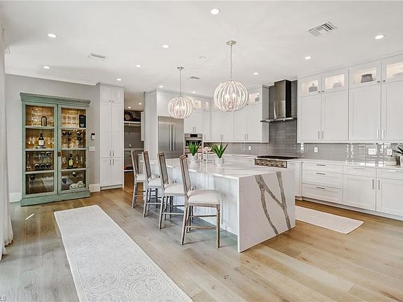 Every part of this property has been renovated giving it the feel of a new built luxury custom home on an oversized corner lot. This 5 bedroom 4 bathroom includes a detached casita, and a private courtyard pool where indoor/outdoor living flow as one with privacy, all while being minutes to everything Naples has to offer. The exterior has complete hurricane protection with a new tile roof and impact windows. The living area is an open concept great room. The kitchen features Bosch appliances and Thermador gas stove, custom cabinets, a large island with quarts counters. The formal dining room is designed to have all of your guests together at one large space for indoor entertaining. The living area also features hardwood flooring, and recessed lighting. The owner's retreat is located on the lower level with vaulted ceilings, closet organization, and a spa bathroom. The first floor also features a guest bed and bathroom, and spacious laundry room/butlers pantry. On the second wing there are two more guest rooms, a loft, and a bathroom. The courtyard outdoor entertaining deck features a redesigned pool and outdoor gas kitchen.The Casita is a guest private living area and bathroom.