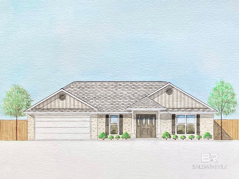 Step inside to find an inviting, open floor plan that seamlessly connects the living, dining, and kitchen areas, perfect for relaxation and entertaining. The kitchen features GE Appliances, 3cm granite countertops, center island bar, and plenty of cabinet and counter top space. The spacious living room highlights a raised box ceiling, and French doors leading to a rear covered porch. The primary bedroom includes a full bath with a double vanity, oversized soaking tub, separate shower with glass door, and large walk-in closet. Other amenities to mention: 4-sided brick to ground construction, double car garage with automatic door opener, fully sodded lawn, LVP flooring throughout main living area and all wet areas, Gold Fortified Certified, Maniblock water system, and much more! Approx. date of completion April 2025 Buyer to verify all information during due diligence.
