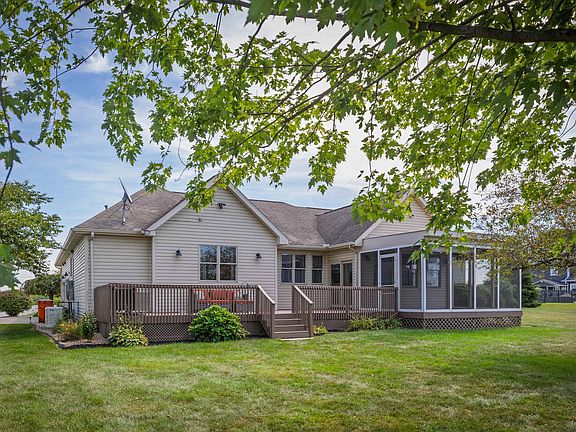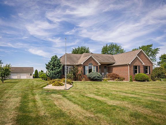 Looking for peaceful country living with plenty of garage space and opportunity to save money on electricity bills? Look no further! Check out this well-maintained brick ranch, featuring a full bath with every bedroom, situated on over an acre in Eastern Schools. It boasts a detached 3-car garage/pole barn and an attached 3-car garage. Set on a 1.12-acre lot just north of the small town of Sycamore. This home offers a peaceful rural setting. With 2,348 sq. ft., this brick and vinyl home, built in 2003, has a large screened-in porch in the back and a spacious open deck perfect for enjoying summer sunsets. Inside, you'll find 3 bedrooms, 3 1/2 baths, a formal dining room with double tray ceiling, a kitchen with a raised bar top, solid wood cabinets, an everyday dining area, and a fully applianced kitchen, including a washer and dryer in the separate laundry room. Master bedroom features a shiplap accent wall, he and she walk-in closets, an updated bath with a walk-in shower and waterfall shower head. There are two pantry/storage rooms for your kitchen and convenience. Recent updates in 2023 includes: new Luxury vinyl plank flooring, new carpet, new front and back doors, new water heater,renovated bathrooms, new paint entire house, new kitchen appliances, a new whole house Generac generator-installed 2023 and new solar system-installed 2023, a big plus allowing for very low electric bills. There's also a 16x11 office or den with a custom desk area, a large entryway, a great family room with vaulted ceilings, wooden beams and fireplace. Sun room off great room for added living space. Don’t wait for this great opportunity to pass you by!”