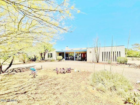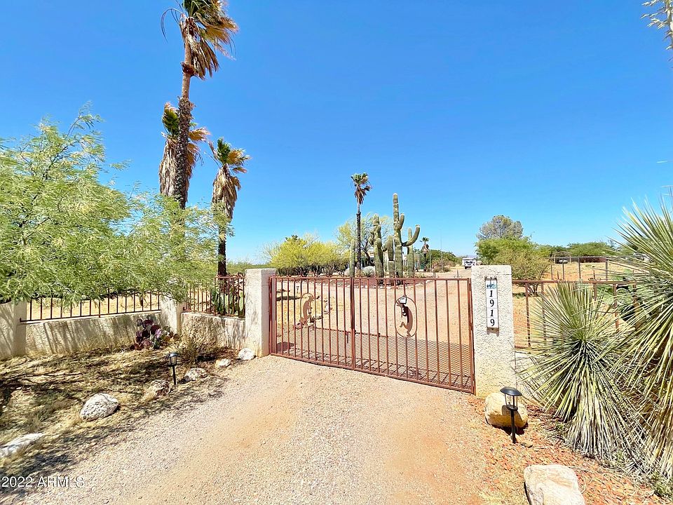 This One of a kind 3 bedroom, 3 bath home is situated on 1.64 acres in town on a fully fenced in cul de sac lot that backs up to Federal land in the highly sought after Ranchos Carmela Estates subdivision. Once you pull in through the gate you'll be in your own secluded sanctuary with a mixture of natural desert plants, mature landscaping, fruit trees, a garden bed, and a charming secret garden area around back. This location provides a private, peaceful setting with two massive covered front and back porches for entertaining, panoramic views of the Dragoon and Huachuca Mountains, RV parking with 50 AMP hookups, a circular gravel drive with ample parking space, and a two car garage with interior workshop. Inside this home you'll be greeted with the stunning vaulted wood planked Ceiling