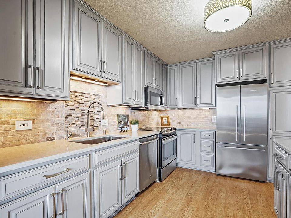 Spectacular lake views from this three bedroom, two bathroom unit at Summit House on Milwaukee's East Side! Beautiful updated kitchen boasts pantry, tiled backsplash, stainless appliances, custom cabinets and extra storage. Open dining area and living room with walls of windows for an over abundance of natural light. Private balcony with lake views. Spacious primary bedroom with en-suite bathroom. In-unit laundry. Rooftop deck and community room. Walking distance to Prospect Avenue and the lakefront! Surface parking has a $56/month fee NEW LISTING PRICE IS $42k LOWER THAN ASSESSED VALUE! Building has laundry facilities on mezzanine level.
