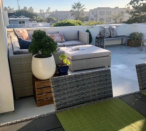 Charming Del Mar tri-level home is just one house away from the ocean and literally steps from the sand. Completely furnished property has been recently updated and is nicely appointed with fresh, light finishes, including white-oak hardwood floors and updated bathrooms and stylized in beach house decor. It features 3 bedrooms, 2 bathrooms, cozy living area, remodeled kitchen with dining area. Enjoy amazing sunset views from one of two, furnished decks. The rooftop deck is spacious and perfect for outdoor entertaining with a BBQ and table that seats up to 8 as well as an outdoor sectional. Two-car, oversized garage with storage and washer/dryer. Exceptional location at the alley of 19th and Ocean Front allows for easy beach access and walking distance to Powerhouse Park and the village of Del Mar. FULLY FURNISHED. Renter responsible for utilities. No pets. Parking in two car garage. Minimum 1-year lease. Deposit is 2 months rent because it is furnished.