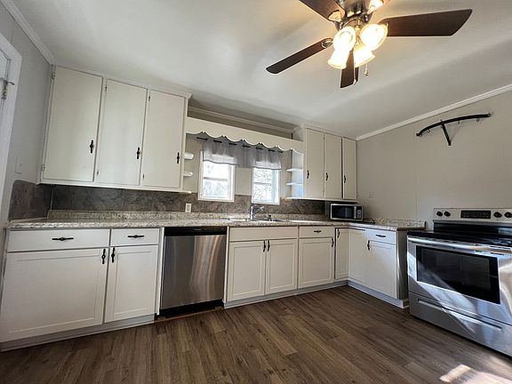 Updated Bungalow style home in Mt. Holly with 2 bedrooms, 1 bath and a bonus room that could be used as a third bedroom. Please note, due to the septic the home is only allowed to have 4 occupants. Home features, arched doorways, neutral paint and flooring throughout and large deck off the kitchen. Home does come with Courtesy use appliances (electric range/oven, refrigerator, and dishwasher) Well water/septic tank and has central HVAC. Please note that home has a large backyard, there is a small house in the back that can be rented together or separately. Both homes share laundry facility located between both homes.