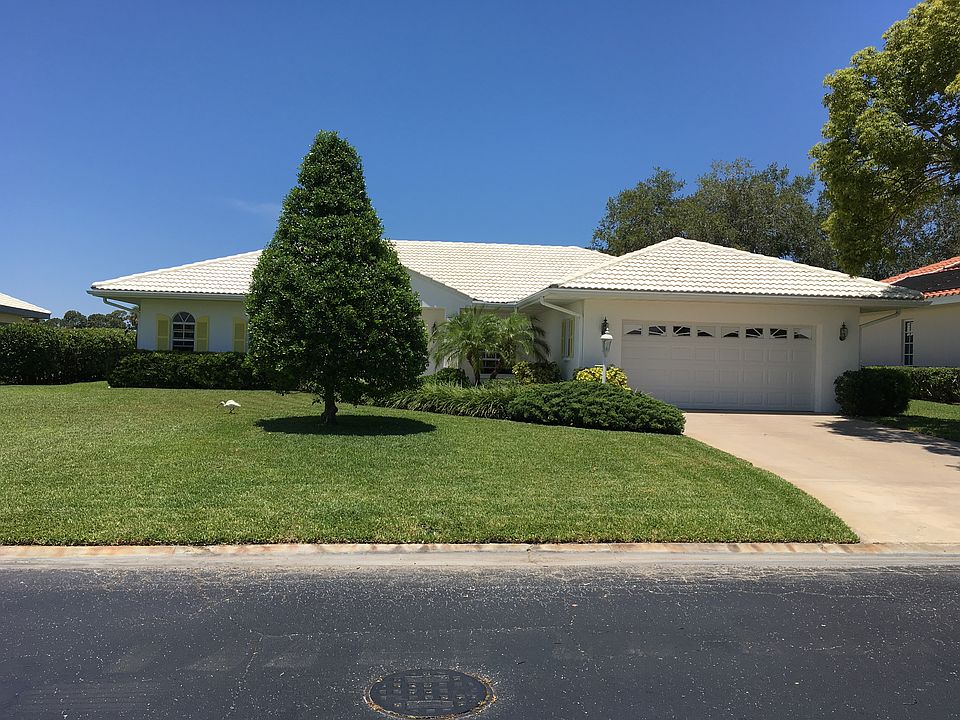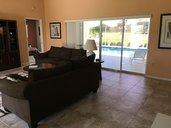 Spacious 3 bedroom, 2 bath pool home with golf course view in beautiful Jacaranda West Country Club. Stunning golf course views from almost anywhere in the home. Cathedral ceilings in the family and living rooms add style and depth to this open floor plan. Recently added tiling flooring. The kitchen overlooks the pool and offers a wet bar, breakfast bar and plenty of dining space. The master bath offers a separate tub and shower with plenty of closet space. This home is just a short walk to Jacaranda West Country Club and golf course. Shopping area with Publix Supermarket, Home Depot, and many other shops just a short drive away, yet home is in a quiet and peaceful community.
