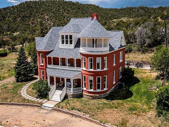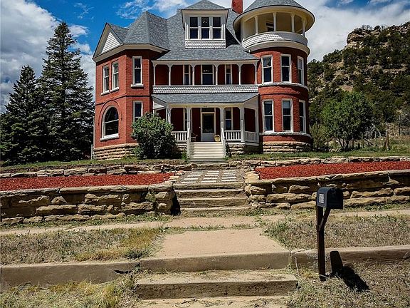 Dream of living in a Colorado Landmark. Welcome home to the McCormick Mansion spectacularly renovated fully furnished Queen Anne Victorian home built in 1890 by regionally famous architects Bulger and Rapp. Come in from the outside to a beautiful wood staircase and foyer. The home was lovingly restored in 2008 and no attention to detail was left out, from the stamped door hinges to the button light switches and period appropriate lighting. There are three working gas fire places on the first floor and two decorative fireplaces upstairs. The house has unobstructed views of Fishers Peak, Trinidad’s most prominent landmark and Simpson’s Rest. Sit in on the new stamped concrete patio in the back yard and listen to the birds and watch the deer or pick vegetables from your raised garden beds. The house is 5784 sf and sits on .64 acres in on a quiet street on the edge of town flanked by pinon juniper forest. There are six bedrooms and four bathrooms, including a large primary suite with views of Fishers Peak from bed and a bathroom that has double sinks, clawfoot bathtub and exposed brick. Expansive kitchen with large island, cabinets that go to the ceiling, pantry, farmhouse sink and a working antique wood burning stove in addition to a Stainless-Steel GE gas stove and oven. A large mud room is attached to the kitchen with laundry and a utility sink. The roof was replaced in 2023. The house has new AC, tankless hot water system, a new backyard patio, landscaping and sprinkler system. It is only a few short miles to Trinidad Lake State Park and Fishers Peak State Park where you can enjoy hiking, biking, boating or fishing and it is about one mile from main street with its galleries and independent shops. Enjoy everything Colorado has to offer. Listing agent is owner.