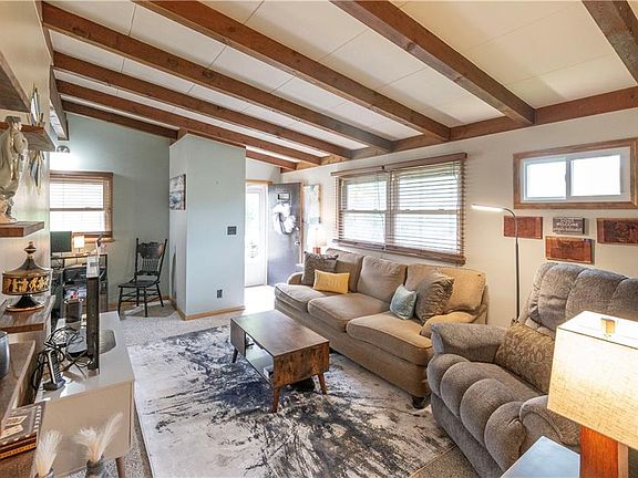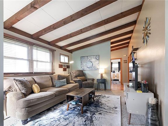 STUNNING GEMBOX MID-CENTURY MODERN HOME BUILT IN 1955! ADORABLE RANCH on a LARGE BEAUTIFUL 0.29 acre LOT FENCED IN! PARK-LIKE BACK YARD that you will LOVE! You will be amazed at all this home has to offer! Spacious living room with dining room (now used as an office). HARDWOOD floors through many rooms in this home. Great features such as the ceiling beams! Garage has been finished out as huge FAMILY ROOM/ NEW vinyl laminate plank flooring. KITCHEN IS SUCH A GEM with NEW counters, NEW sink and lots of light! Note the 3rd bedroom can be easily converted back but is being used as an eat-in kitchen/ pantry. NEW ROOF 2023! HVAC is REPLACED and 7-8 Years old. UPDATED breaker box and some new plumbing. NEW EXTERIOR PAINT 2024, Water filtration system 2023 and NEW flooring in several rooms. This home is move-in ready! Yard is amazing and is LARGE with trees and a shed. Fenced yard for kids and pets! Back deck to have a SUMMER BBQ with family or friends over! GREAT HOME FOR A FIRST-TIME or SECOND-TIME BUYER! Basement has so many useful areas with a tool bench/shop area, laundry area, storage room and large hanging bars for extra clothing. There is plenty of parking with 2 front driveways. Call listing agent with any questions as I'm happy to help! Hurry as this home won't last long.