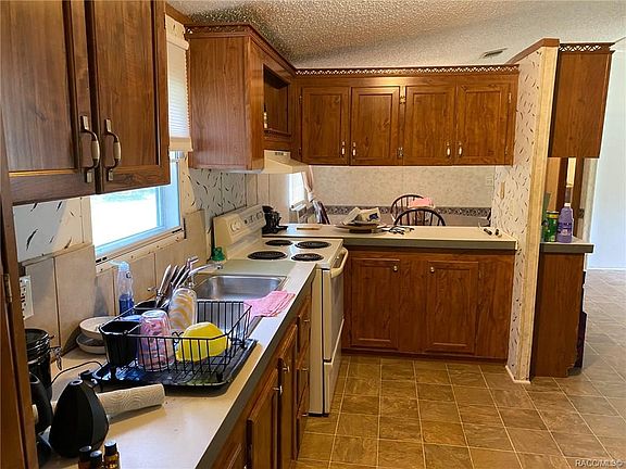 This mobile home has great bones, it just needs someone to love it again! It is located in a nice area of Homosassa with a mix of site built homes and nice mobiles. It is on a little over an acre property with no restrictions. Spacious open area where the living room, dining room, kitchen areas come together with a desk area. Split floor plan with the master on one side. The master bath needs to be finished (some updating was being done) and has a garden tub and a separate shower. Inside laundry. The back of the home has a nice deck that overlooks the big yard with sheds. Very private and quiet.... come check it out! It comes completely furnished.