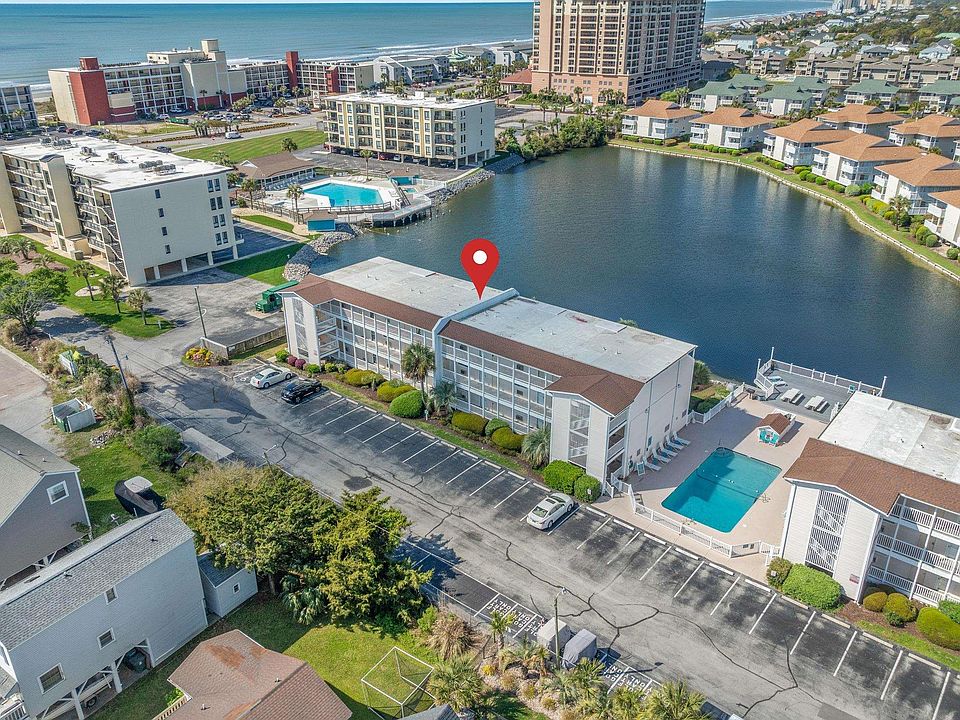 Located in the city of North Myrtle Beach in Cherry Grove is where you will find the Beach Cottage community. Just steps from the sand and nestled on the top floor, this charming 2 bedroom, 1.5 bath condo offers the perfect blend of comfort and coastal living. Enjoy peaceful views of the lake behind the building, sip your morning coffee on the balcony, and spend your days lounging by the community pool or walking across the street to the beach. Fully furnished and move-in ready, this bright and welcoming space is ideal for weekend getaways, seasonal escapes, or everyday living. With local restaurants, shopping, and entertainment just around the corner, you’ll be right where you want to be—close to it all, yet tucked away in a quiet, beachside community.