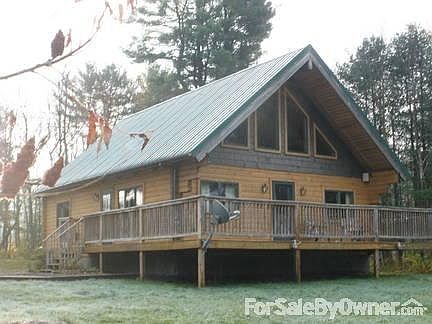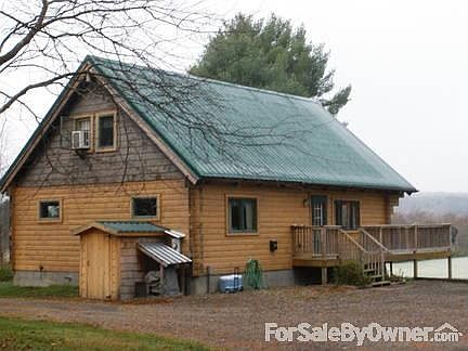 Built by the owner in 2005, this remarkably secluded beautiful log home boasts breathtaking sunsets and year-round tranquility. Positioned nicely off State Highway 205 so as not to be seen, this home is easily accessed from either Oneonta or Cooperstown. There are two bedrooms and a full bath on the main floor. The bathroom also has a washer and dryer. The loft-like master suite on the second floor overlooks the Living Room and Kitchen. Recently upgraded with granite countertops and a Corian island, the kitchen - featuring a six-burner commercial stove - has been smartly incorporated into the mainstream flow of the house, creating a Great Room atmosphere that is welcoming and most engaging for entertaining. There is a circular staircase to the basement that is finished with a bar, pool table, sink and 1/4 bath. It is also easily directly accessed from the outside.The property also has a heated two-car garage with a workshop area and commercial sink.Additional property info: http://www.forsalebyowner.com/listing/3-bed-Single-Family-home-for-sale-by-owner-1919-State-Highway-205-13810/23972437?provider_id=28079